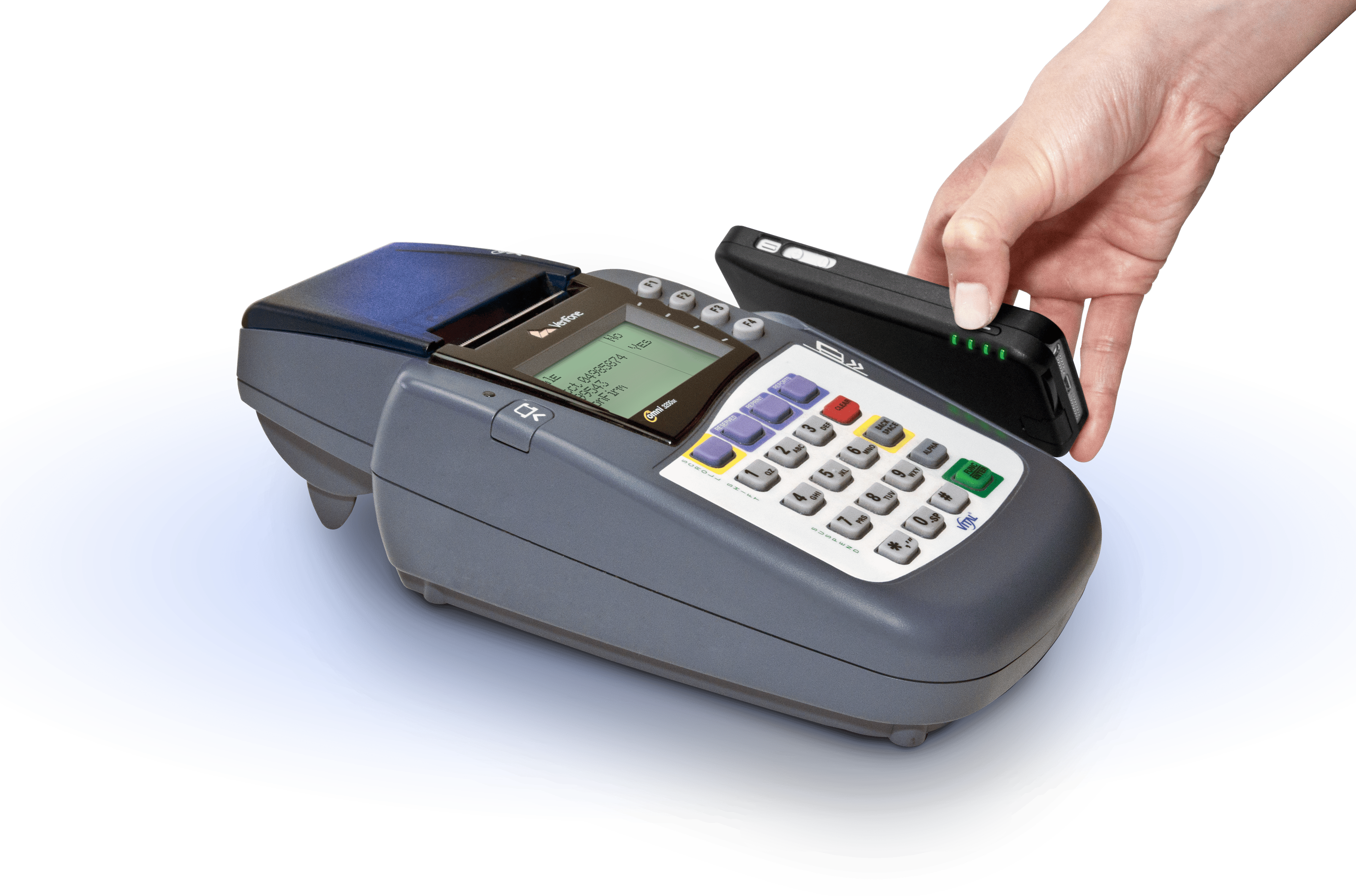 Then, when shopping, the customer simply holds the device near the retailer's payment terminal and hits the payment button. The terminal receives the customer's credit card information just as if the actual plastic card had been swiped through the machine. Users can input all of their credit cards, as well as gift cards and loyalty program cards -- pretty much any card with a magnetic strip.