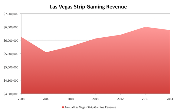Note: 2014 data the trailing 12 months through November. Source: Nevada Gaming Commission.