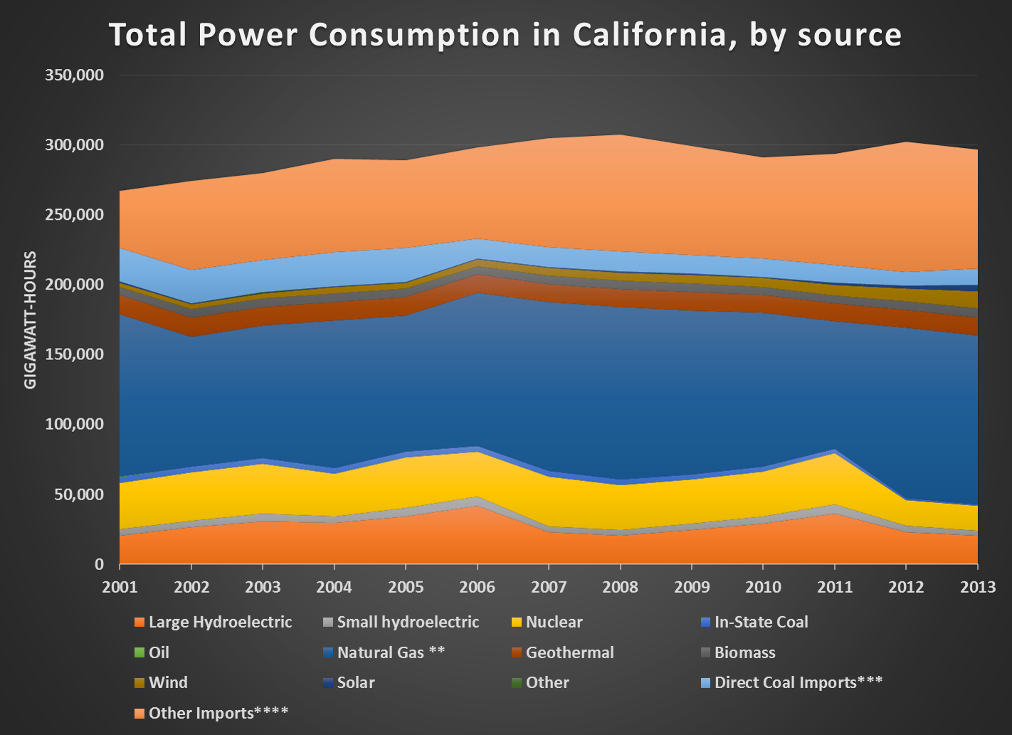 Like everywhere else in the US, it will take a gargantuan effort to make this happen. According to the State's Energy Almanac, about 20% of the energy supplied to the state -- 60,000 gigawatt-hours worth -- came from renewable sources. This is a pretty good place to start considering that much of the rest of the nation gets 13% of its power from renewables including hydropower, but it's far from meeting 50% of the 300,000 gigawatt-hours that were consumed in the state in 2013.
