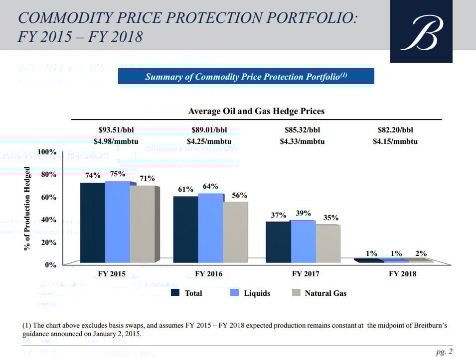 As shown on the following slide, 75% of Breitburn Energy Partners' oil production is hedged in 2015.