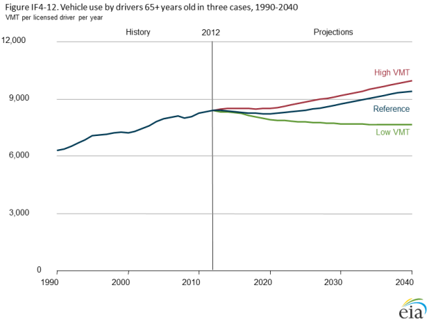 Seniors, on the other hand, have been increasing the miles they travel each year as we see in this next chart.