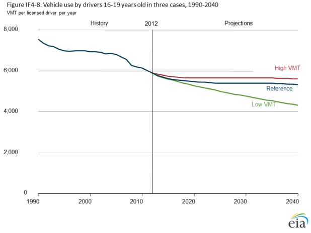 Not only is a lower percentage of teenage drivers getting their license before turning 19, but teens have really put the brakes on the number of miles driven over the past couple of decades. Once a right of passage, teens are finding driving to be too costly, especially considering the sky-high youth unemployment rate these days. These trends are playing a big role in the decline in miles driven by teens over the past few years, which is a trend that looks likely to continue into the future.