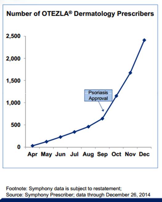 According to Scott Smith, the president of Global Inflammation and Immunology: "Otezla prescriptions accelerated significantly in Q4 following the psoriasis approval and with continued strong progress on the PSA launch. Otezla has obtained a highest initial weekly RX volume of any launch in the I&I space in recent years."