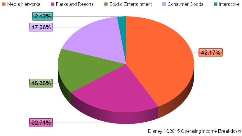 Operating income at Disney's consumer products and interactive divisions respectively climbed 46% and 36%. The disparity between revenue and income growth at the interactive division was due to the strong performance of high-margin mobile games such as Tsum Tsum and Frozen Free Fall.