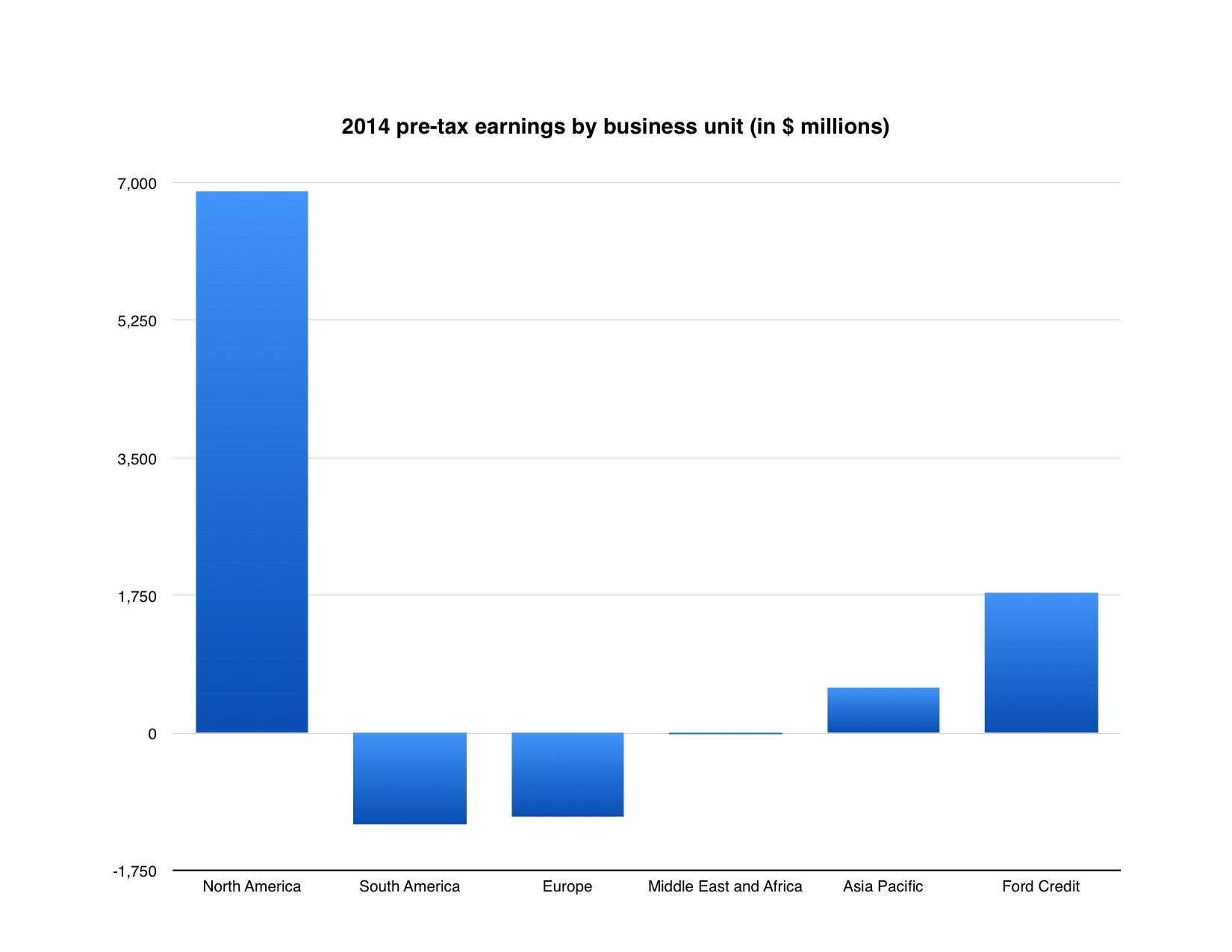 The chart below shows how the 2014 pre-tax income for each of Ford's regions stacks up: