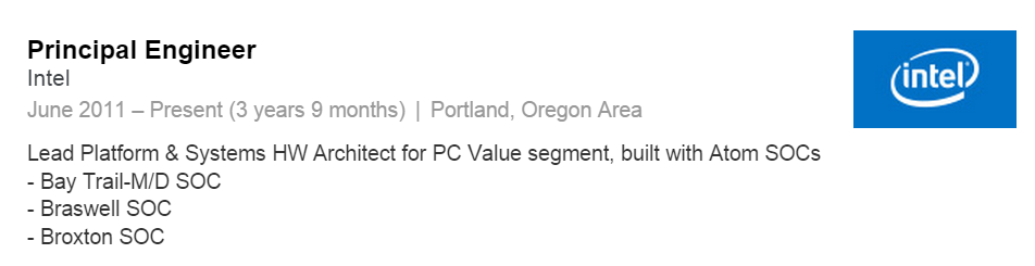 According to an Intel employee's LinkedIn profile, the company is also bringing Broxton to the low-cost notebook/tablet PC market.