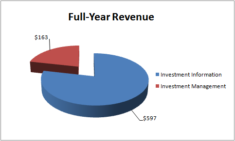 Morningstar broke out revenue in two different product groups -- "Investment Information" and "Investment Management" -- both of which reported good growth in the quarter. Investment information revenue increased 7.5%, to $154 million, in the fourth quarter, while investment management revenue grew 14%, to $37.2 million in the same period.