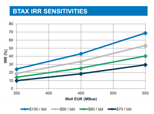 Sure the company has some of the lowest drilling and lease operating costs in the Permian, but when the company's internal rate of return at $70 per barrel of oil is less than 10% for some wells, oil prices in the $50 range will likely keep investors scared.