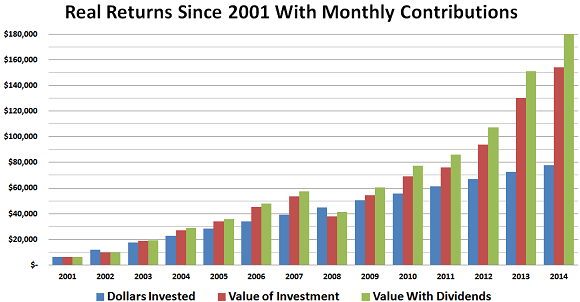 Based on $5,500 annual contributions, invested monthly, starting December 2000.