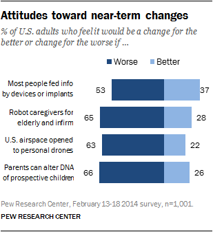"53% of Americans think it would be a change for the worse if most people wear implants or other devices that constantly show them information about the world around them," the study said.