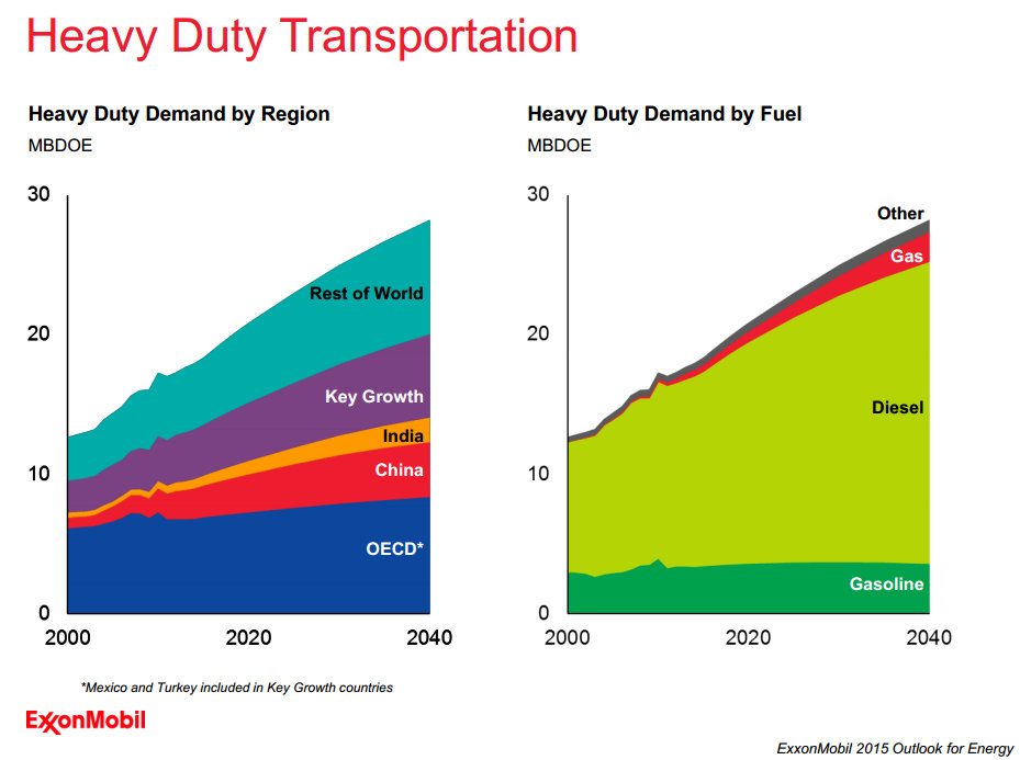 Overall, diesel is the single largest growth driver for oil demand in the future and it is the reason why overall demand for oil is expected to grow by just under 1% per year. While that might not sound like a lot, it's over a very, very large base and it equate to billions of barrels of new oil supplies needing to come online in the future representing trillions of dollars in future investments.