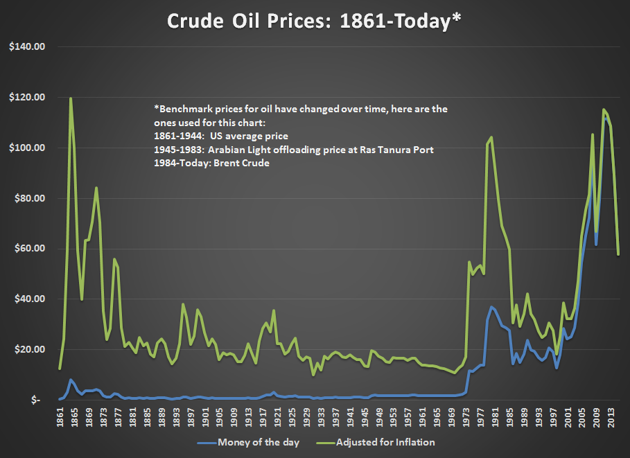 Let's just use an example here. In 1980, the price of oil -- adjusted for inflation -- was at a major peak of $104. From there it would decline for five straight years and would never reach that inflation adjusted price again until 2008. For 15 of those 28 years oil prices were one-third what they were in 1980. If we were to use oil prices as our litmus test, then any energy investment made in 1980 would have been a real stinker.
