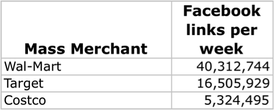 The world's biggest retailer not only had more than twice as many likes, comment, and shares on Facebook than Target did, but at 40.3 million points of engagement, Wal-Mart had over seven and a half times the number than Costco did.
