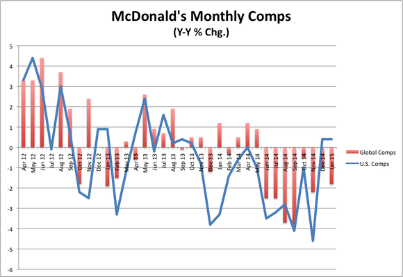 Everyone's focused on McDonald's (NYSE: MCD) Japanese same-store sales collapse in January, while largely ignoring the two consecutive months of rising comps in the U.S. That's the first time since October 2013 McDonald's was able to string together back-to-back sales growth here at home and follows after an unusually steep 4.6% drop in comps last November.