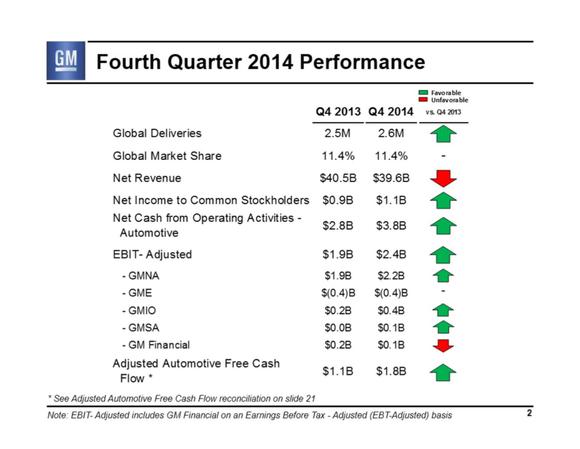 As CEO Mary Barra explained to investors during GM's earnings call, 2014 was a good year for GM. Here's what she said, along with four more things GM management wants shareholders to know.