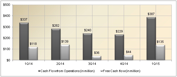 In the quarter, net operating cash flow increased 14.8% year-over-year to $387 million, driven by an approximately 6% increase in net profit.