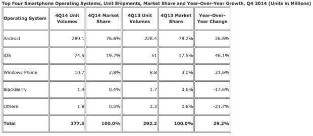 "Instead of a battle for the third ecosystem after Android and iOS, 2014 instead yielded skirmishes, with Windows Phone edging out BlackBerry, Firefox, Sailfish and the rest, but without any of these platforms making the kind of gains needed to challenge the top two," said Melissa Chau, Senior Research Manager with IDC's Worldwide Quarterly Mobile Phone Tracker.