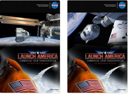 Pretty soon, ISS will be able to hail at least two American "space taxis" for pickup and delivery: Boeing's CST-100 space capsule (left) and SpaceX's Dragon V2 (right). Source: NASA.