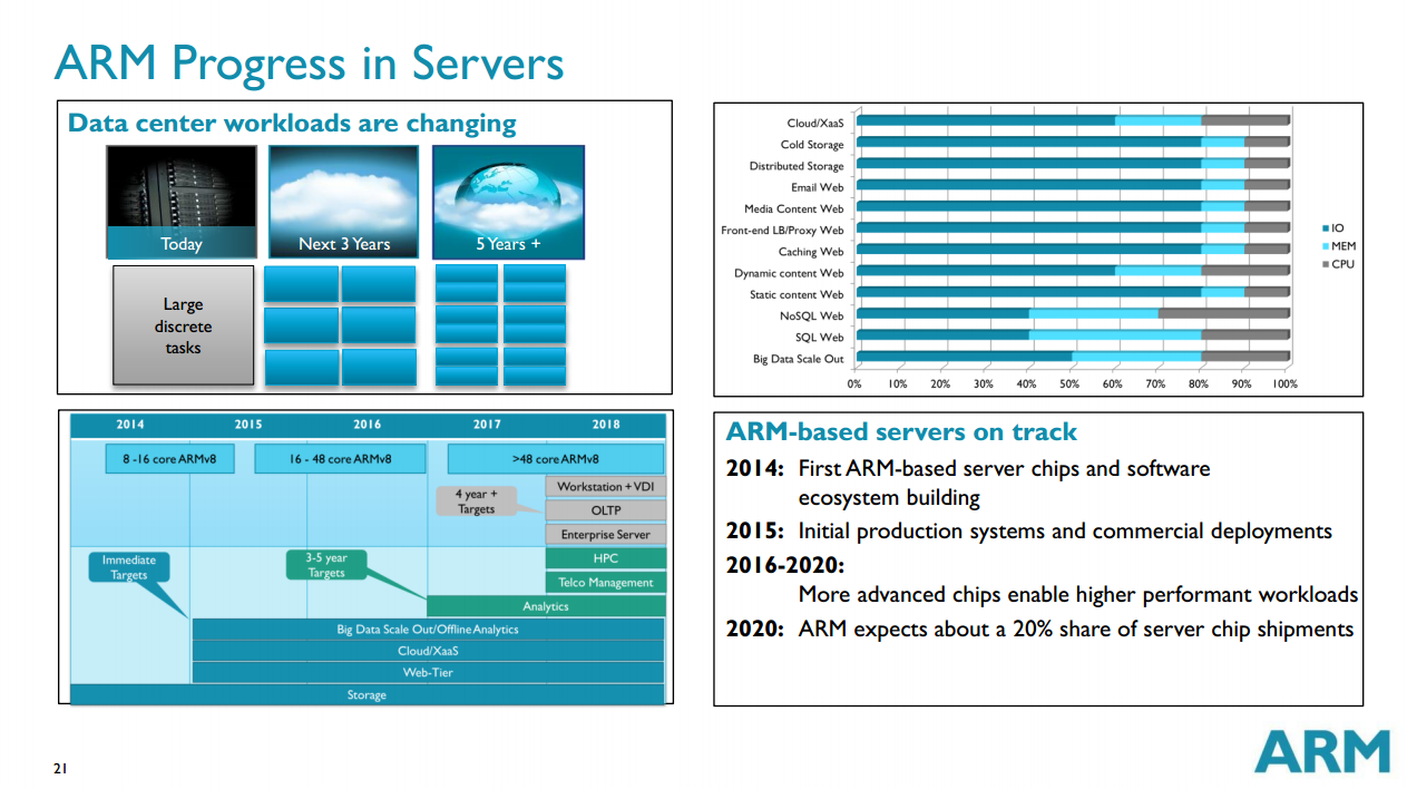 ARM is also aiming to grab about 20% of the server market by 2020. The company showed the following slide illustrating its expectations: