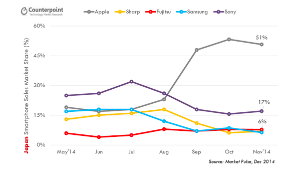 On the other hand, it's important to put this growing consumer preference into context. In terms of the Japanese smartphone market, Apple still absolutely dominates the scene.