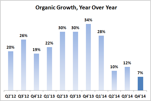 A concerning development that surfaced during the quarter was that 3D Systems' North American segment performed poorly compared to other geographies, and weighed heavily on its organic growth rate -- the rate of annual revenue growth excluding acquisitions over the past year.