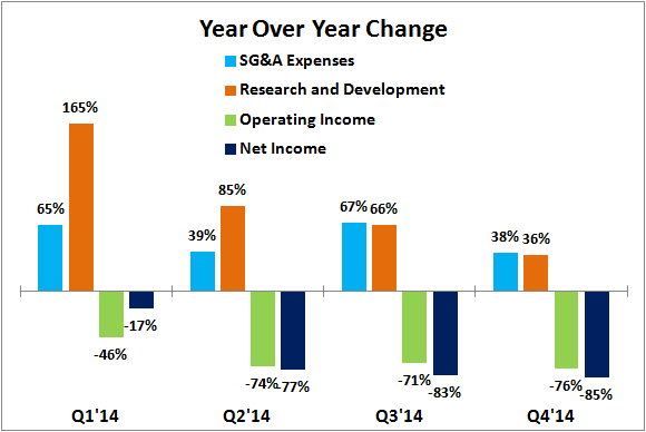 However, as 2014 demonstrated with 3D Systems, a resolved issue doesn't necessarily prevent a new issue from emerging. Having a jack-of-all trades approach to its market opportunity may have its advantages, but it isn't an easy business model to execute.
