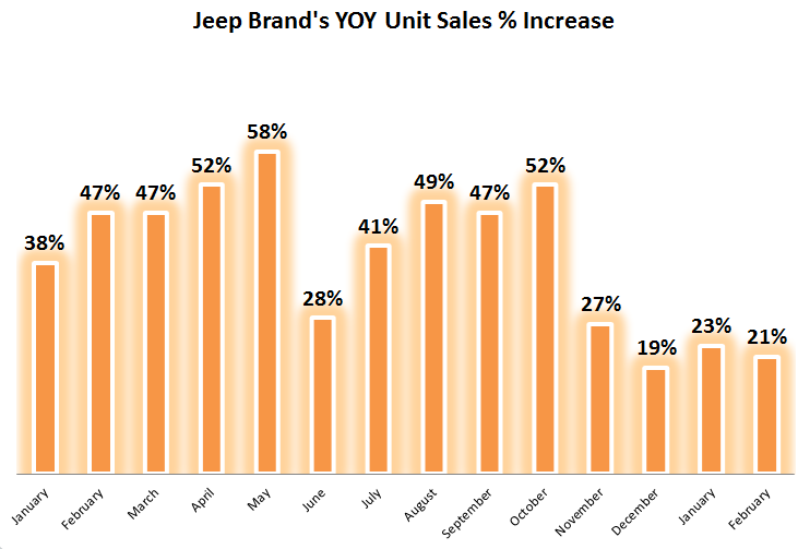 Despite tougher year-over-year comparisons, here's a look at how strong Jeep's gains have been.