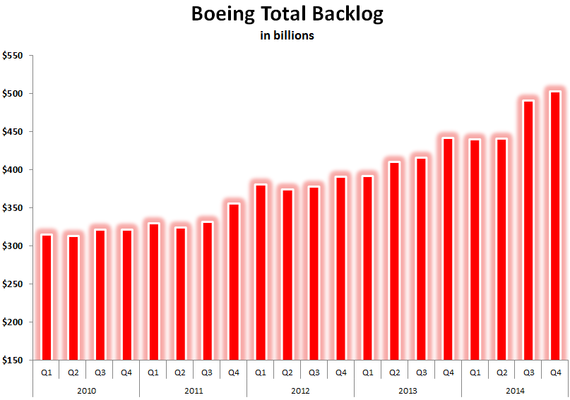 Last but not least, investors can rest at night because Boeing's backlog of orders is worth $502 billion, which is five times estimated sales this year.
