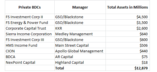 The end game is that many of the private BDCs today will seek a public listing on a faster timeline than originally expected. When private sources of funds dry out, their managers will inevitably turn to the public markets.