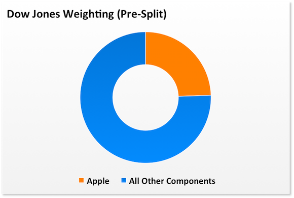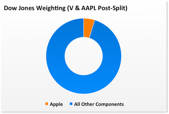 To illustrate, this is how Apple would have been weighted in the Dow before its split if it were to replace AT&T.