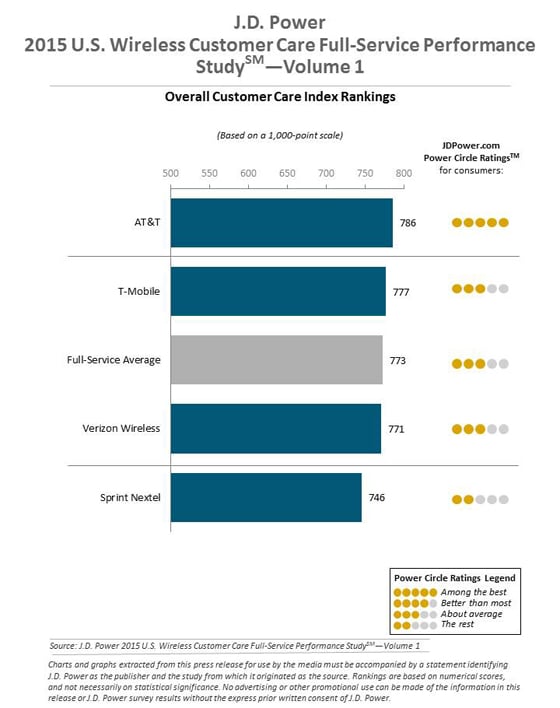 And remember the J.D. Power survey results? Verizon came in third place in customer service satisfaction among its competition, yet the carrier has the most wireless customers in the U.S., has the best-performing network according to RootMetrics, and has some of the lowest churn rates (the percentage of customers that leave each quarter) in the industry.