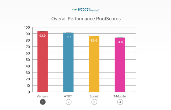 Verizon beats all other carriers in overall performance. Source: RootMetrics.