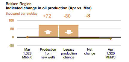 As that projection from the U.S. Energy Information Administration shows, production from the Bakken shale region, which includes Montana, is expected to see continued declines over the next month. This is due to an expected drop in production from legacy wells of 80,000 barrels a day, which will completely erase the projected 72,000 barrels a day production boost from new wells that are expected to be completed over that time frame. This trend suggests that oil production from the Bakken region could continue to decline for quite some time, as the industry needs a meaningful recovery in oil price before producers start bringing enough new wells online to reverse this trend.