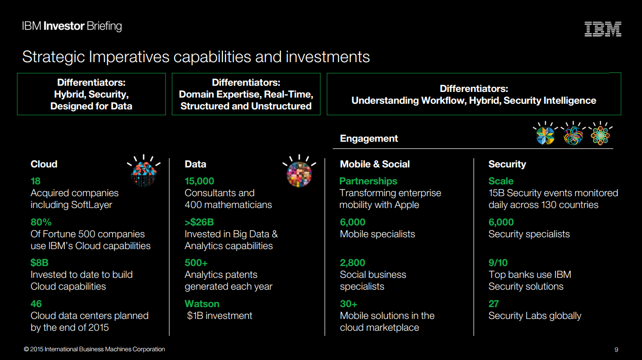 While IBM is viewed by some as a company stuck in the past, unable to keep up with a changing IT landscape from the rise of cloud computing to the growing importance of mobile, the company has made a lot more progress than many realize. At a recent IBM Investor Briefing, the company laid out its plan for a return to prosperity, built on strong growth in what IBM calls strategic imperatives.