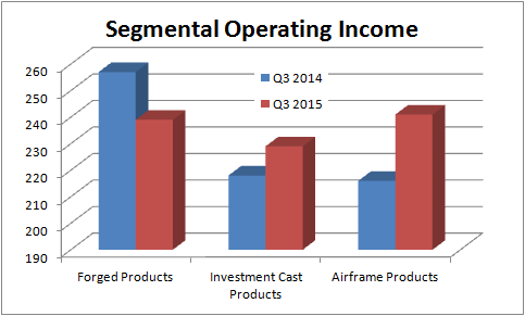 A breakout of its segmental operating income for the third quarter demonstrates that the problems mainly affected its forged-products segment.