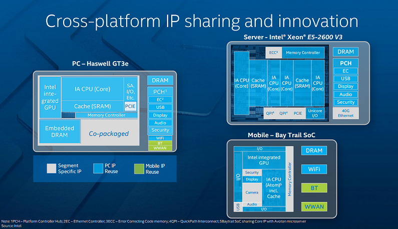As you can see, Intel reuses blocks that it designs for one product or market segment in other product segments.