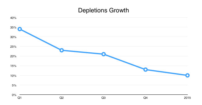 Boston Beer's depletions growth. 2015 is management's forecast. Source: Company financial filings.