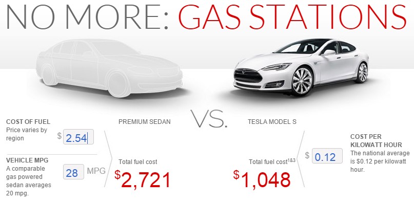 Source: Tesla Motors; assuming 30,000 miles driven per year.