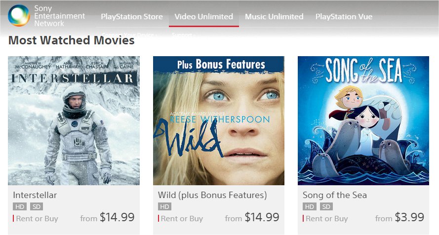 Movie rentals at the PS Store. Source: Sony.