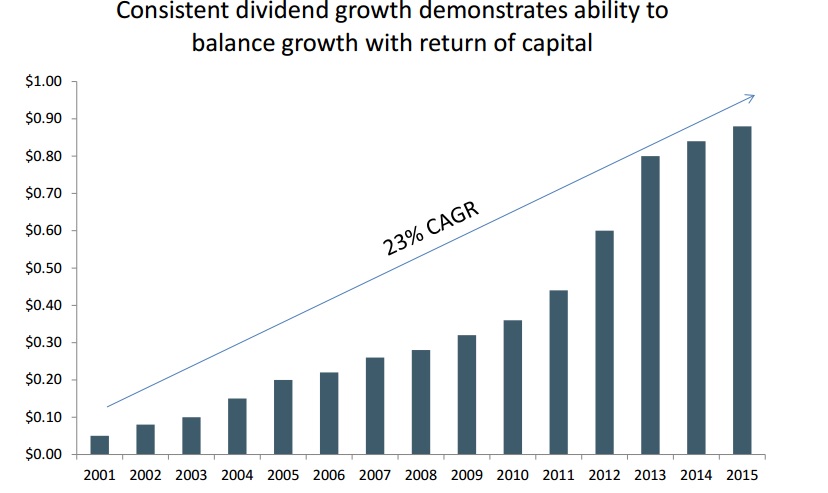 Numerous studies have shown that stocks with consistently strong dividend growth make the best long-term equities. As the above image shows, Royal Gold's dividend growth track record is indeed impressive, even more so when compared with the severe dividend cuts from miners like Newmont Mining or Barrick Gold.