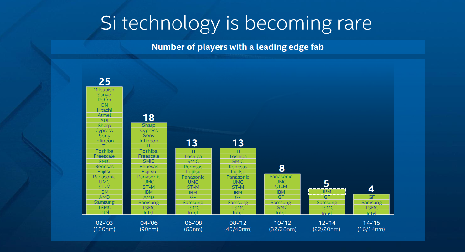 However, it's hard to deny that Apple brings a lot of volume, and -- perhaps more importantly -- a lot of volume at leading-edge technology. As Intel likes to point out at its investor conferences, semiconductor manufacturers that don't have leading-edge volume eventually lose the scale required to continue investing in leading-edge technologies and factories.