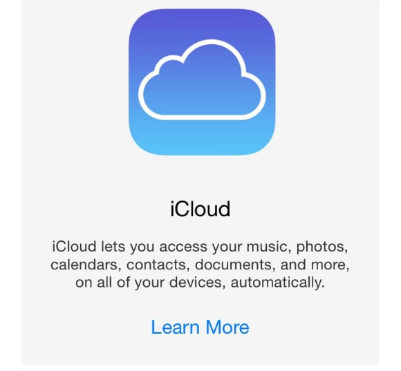 Apple customers can keep all of their data, music, pictures, and more in the iCloud. Source: screenshot