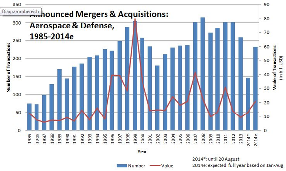 Moreover, many sub-sectors of the industrial sector -- which is typically as seen as one of the most economically sensitive -- have experienced declining M&A activity since the last recession.. For example, aerospace and defense.