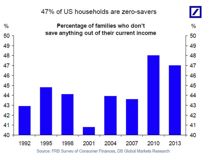 Nearly half of American families don't save any money: