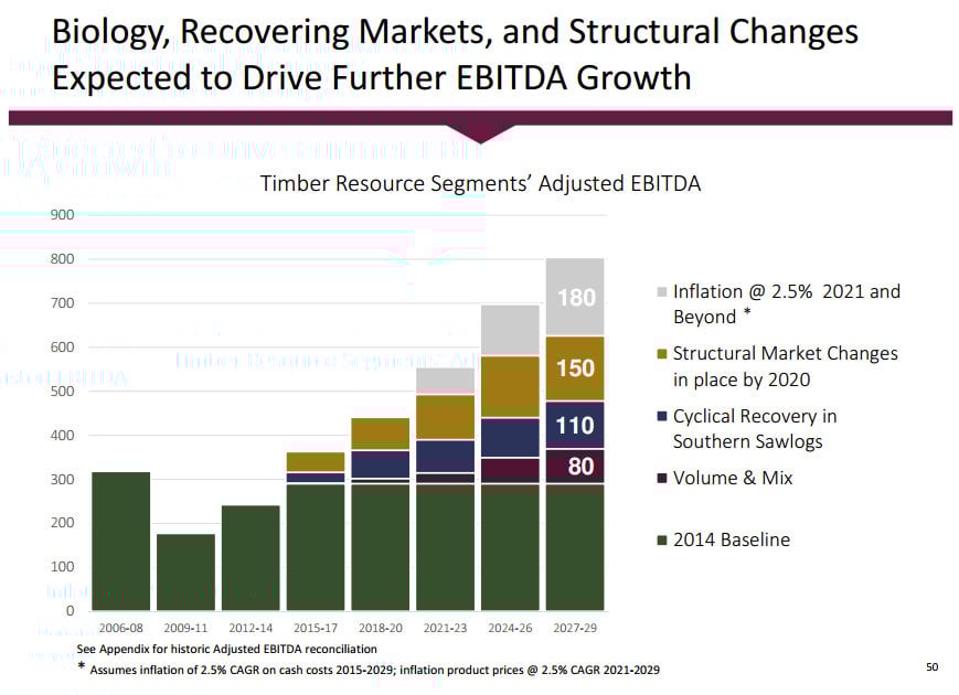 This biologic growth, when combined with inflation and changes in the market, is expected to lead to steady earnings growth for the company's investors for years to come, as we see on the following slide, which shows the benefits of an investment in trees.