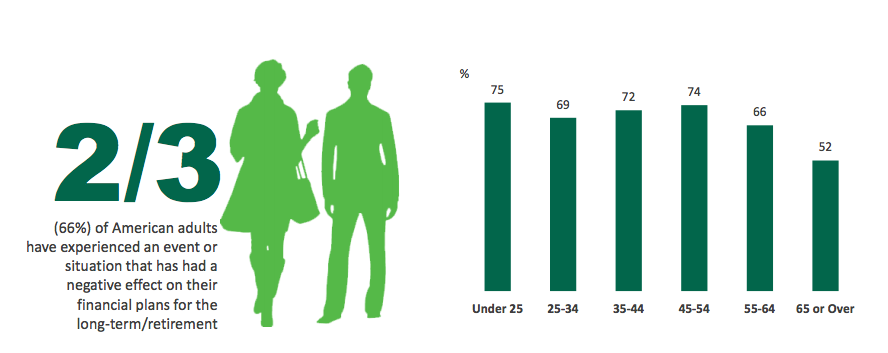 Last year, TD Ameritrade conducted a survey of Americans who had experienced a "financial disruption." Researchers defined that as "all major life events that can disrupt long-term savings and investing strategies and negatively impact retirement plans." That includes things like getting injured, divorced, or losing your job. Ostensibly, financial disruptions could better be referred to as "huge, depressing, pain-in-the-butt life episodes."