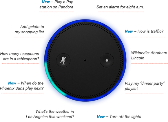 Since launch, though, Amazon has slowly rolled out new features for Echo. Some -- like the ability to make it repeat anything you say by using the "Simon Says" command -- were clever, but not very valuable. Others, including the addition of news reports, support for Pandora's streaming music service, and real-time traffic reports, began to make the digital assistant more than a novelty.