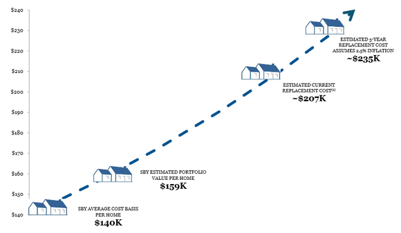 The average replacement cost of Silver Bay's homes is estimated at $207,000, with significant increases expected over the next several years. So there's an incredible long-term opportunity for the company to grow its equity in the homes it owns.