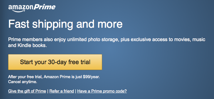 Prime is $99 a year, but Amazon offers a free month-long trial. Source: Screenshot