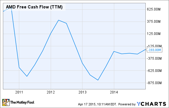 Perhaps the most frustrating part of this for AMD shareholders must be the fact that AMD paid $281 million in cold hard cash for this acquisition. It would be one thing if AMD were generating robust levels of cash year-in and year-out, but as you can see from the table below, AMD's cash flow situation since early 2012 has been pretty bad: